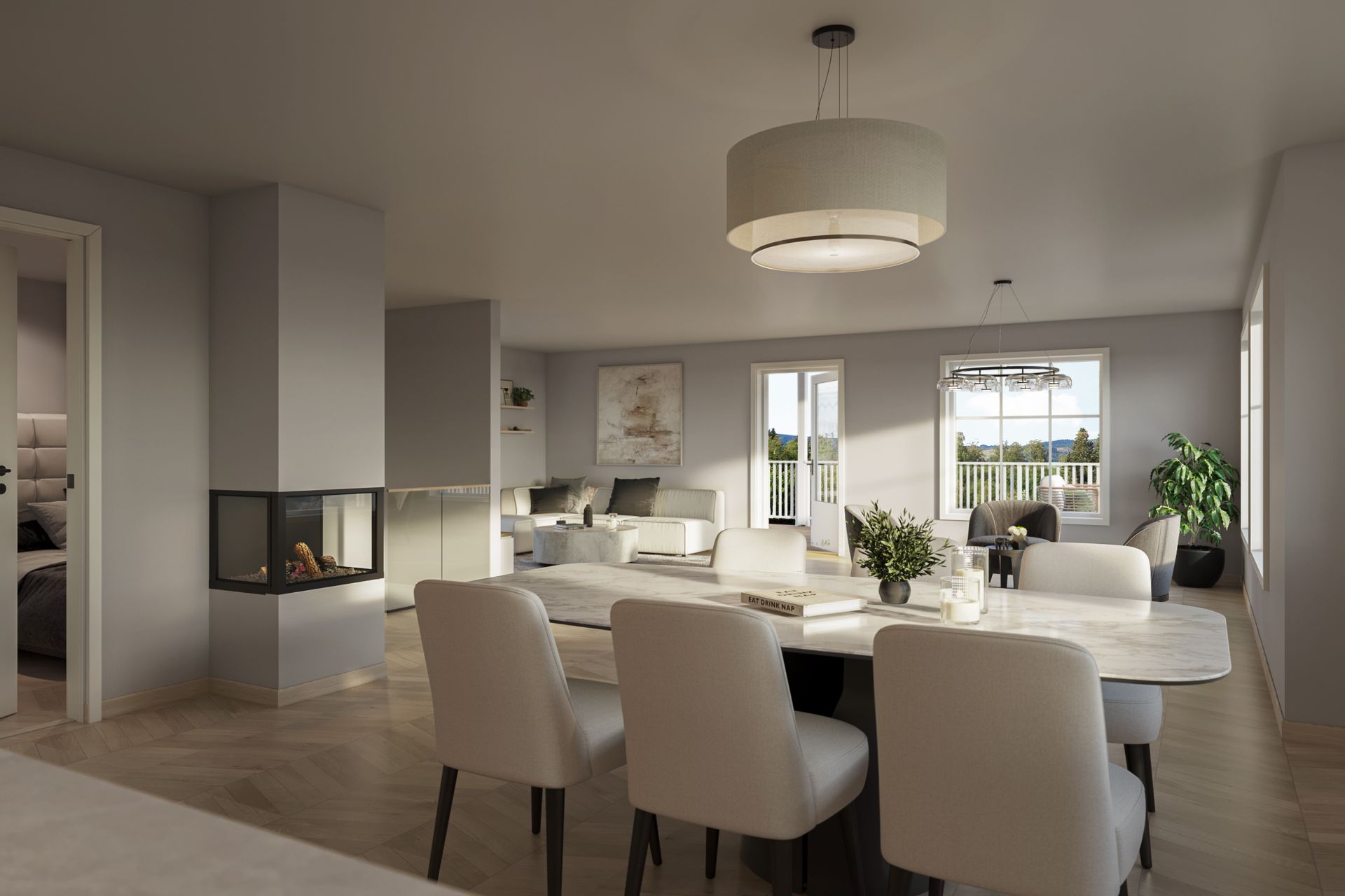 I hovudetasjen opnar bustaden seg verkeleg. Det store opphaldsrommet med open løysing mellom stove og kjøkken har vindauge i fleire retningar, gir rikelig med dagslys og flott utsyn. Her er det plass både kvardagsmiddag og festlag, og frå stova har du utgang til ei overbygd veranda - ein perfekt stad for morgonkaffe eller lange sommerkveldar.